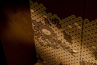 パブリックスペースには、平安時代の遊び道具で飾扇、香炉、貝合わせ、文庫や香立、匂袋、古書の他、訶梨勒飾、几帳、伏籠、小火取香炉などの小物で演出。エレベーター扉は平安期の着物の柄「有職文様」と、伊勢の伝統工芸「伊勢型紙」をモチーフに各フロア春夏秋冬をイメージし、廊下の絵画は「斎王群行」の様子を、当時の群行の配列や装束の形態や色彩に考慮し制作しました。
