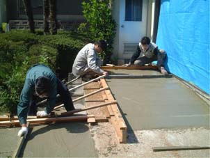 施工段階では、材料発注からタイルはつり、型枠、コンクリート打ち、手すりの施工までを皆で行いました。普段施工監理は行っているものの自ら施工することには不慣れなこともあり苦労しましたが何とか完成しました。